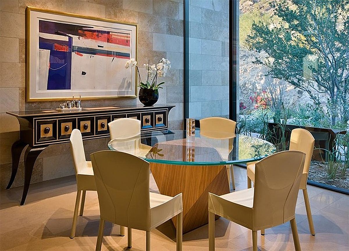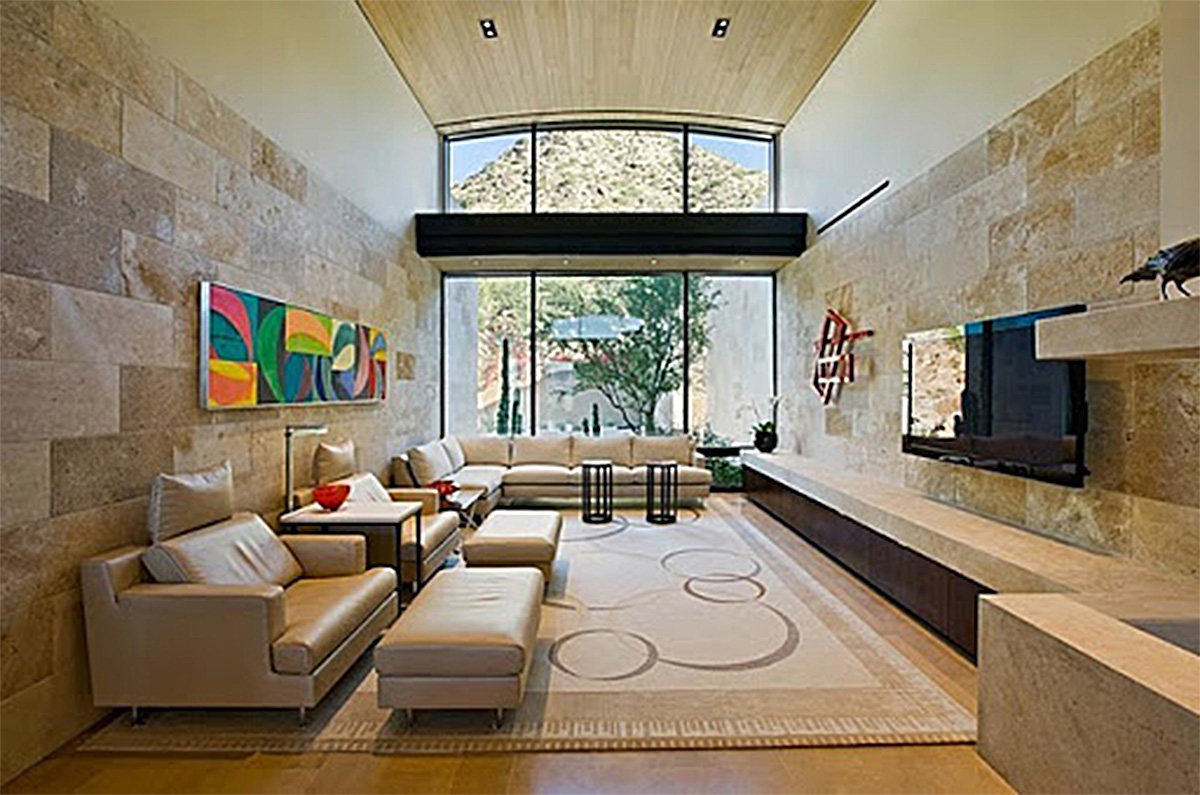 Precious Pieces designed Art Washi Parchment window shades for a Scenic View Living Room, AZ. Continuous Washi Parchment patterns throughout the windows is perfectly complementary to the stunning landscapes and breathtaking vistas from vibrant cityscapes to the majestic beauty of the Sonoran Desert.