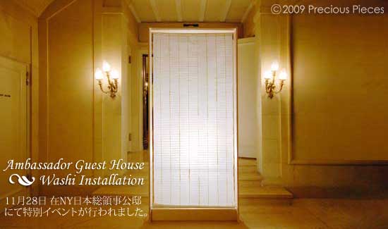 Precious Pieces showcased the special washi installation event on Oct. 28. This event is held at Japanese ambassador's guest house in New York City to introduce the world to the diverse array of high quality foods and products born in Japan. The invited guests are highly prestigious individuals and media.