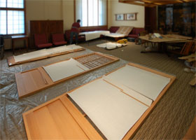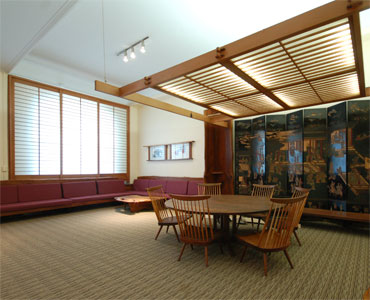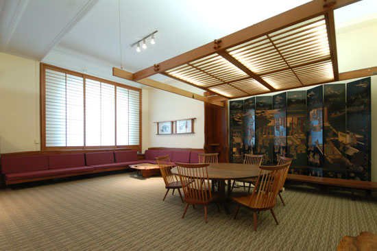 Precious Pieces produced Japanese style shoji screen with restored George Nakashima furniture in Student Faculty Lounge, Columbia University