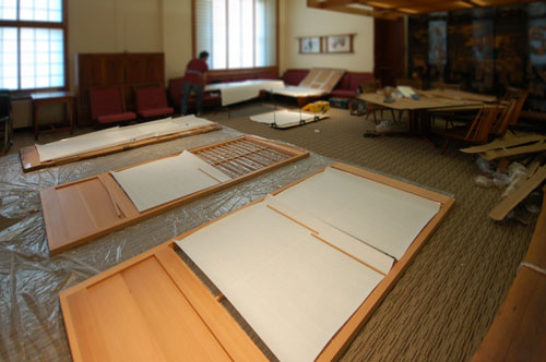 installing foam backing (reinforced) washi for shoji doors