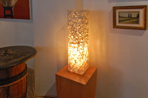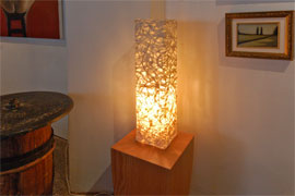 in the area known as DUMBO in Brooklyn, New York exhibits Precious Pieces' washi parchment lamp in their gallery space. Visit them and see how our lamp compliments Olga Guanabara's one-of-a-kind modern furniture. Explore an historic section of New York City with its cobblestone streets and original details.