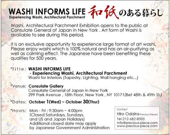 It is rare opportunity to experience large art washi, architectural parchment. The show opens to the public.