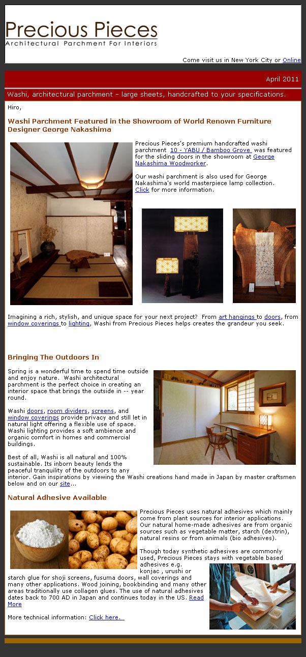 April 21, 2011 Washi Parchment Featured in the George Nakashima Showroom
