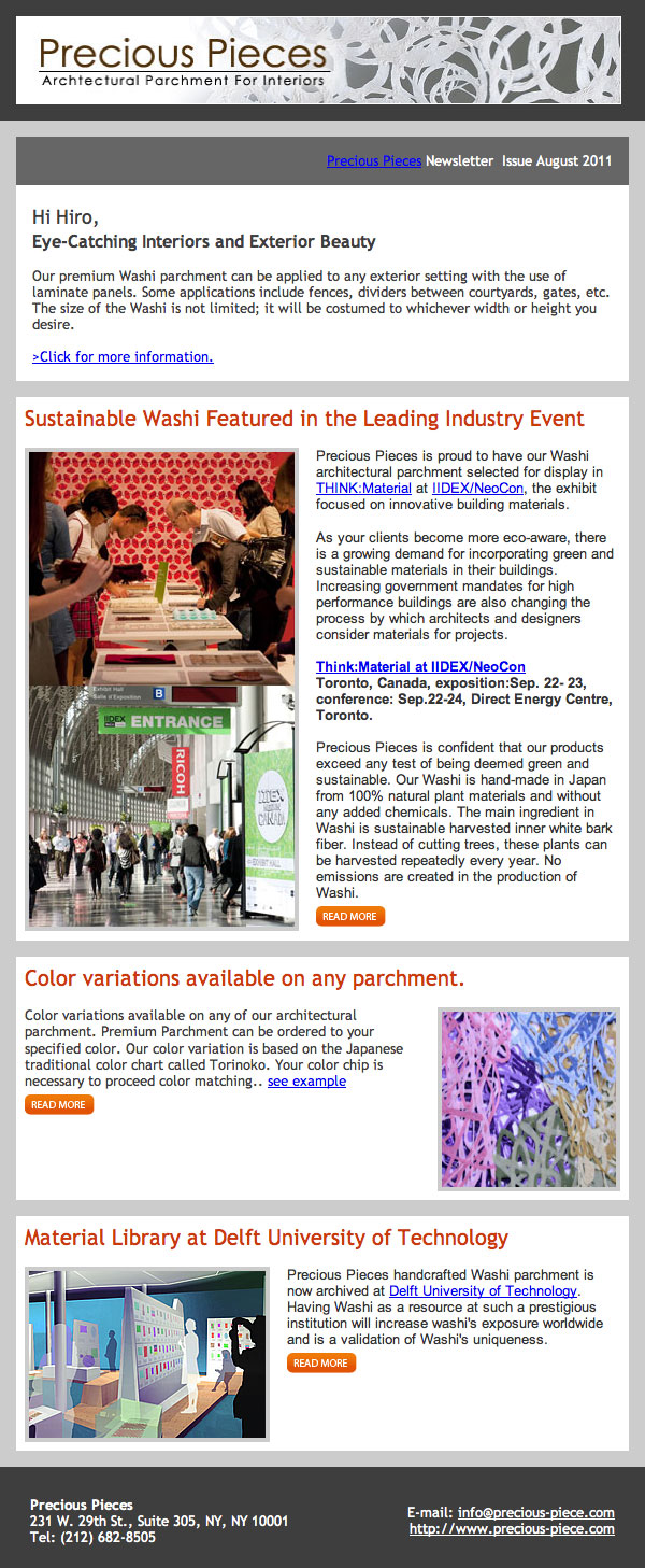 August 30, 2011 Sustainable Washi Featured in the Leading Industry Event