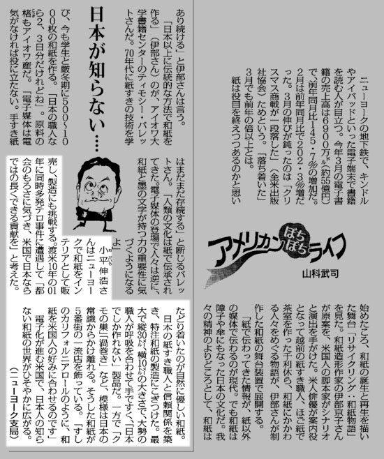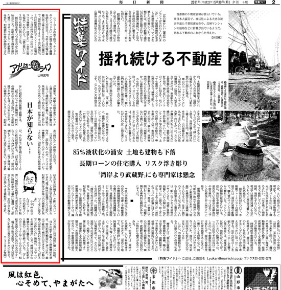 毎日新聞 5月30日夕刊 山科武司‐アメリカンぼちぼちライフ - May 30, 2011