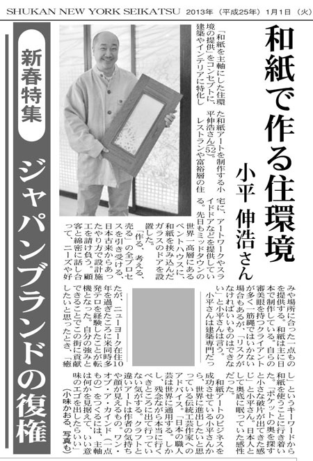 週刊NY生活 1月1日号 「ジャパンブランドの復権」に掲載されました