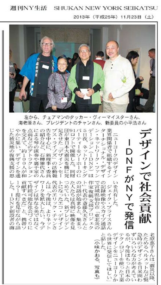 週刊NY生活 11月26日号 「デザインで社会貢献」に掲載されました。
